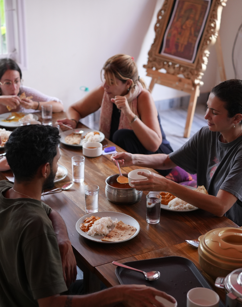 Bienvenida al retiro en India. Comenzamos en Mysore por la tarde con la presentación y entrega del kit de bienvenida. Abrimos este viaje consciente con una ceremonia de cacao y meditación, seguida de una cena nutritiva y un taller para conectar y crear comunidad.